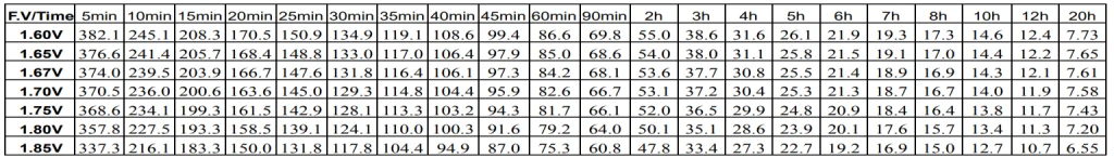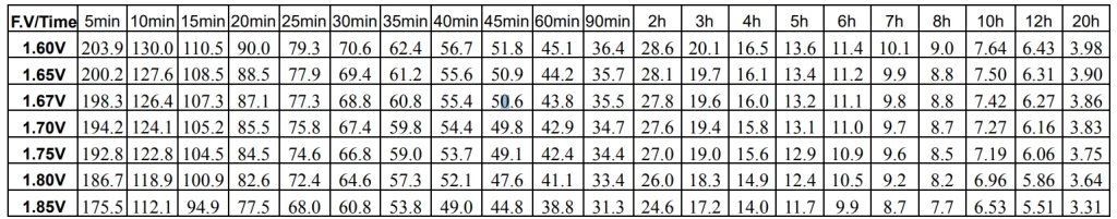 Разряд постоянной мощностью на ячейку (Watts at 25°C)