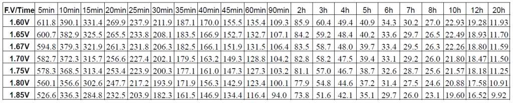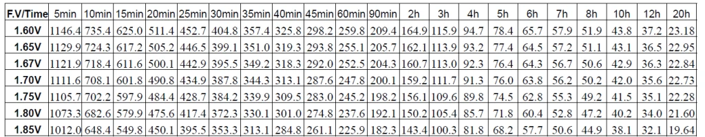 Разряд постоянным током на ячейку (Amperes at 25°C)