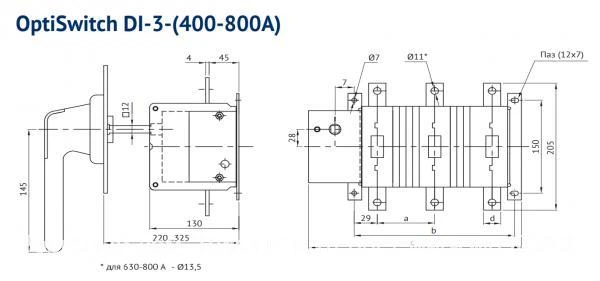 Выключатели нагрузки КЭАЗ OptiSwitch DI-3-630-3P имеют следующие характеристики:
