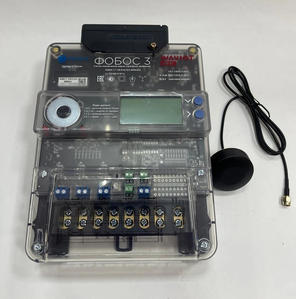 Счетчик ФОБОС 3T 230В 5(10)А IQORLМ-A NB-IoT SMA — это статический трехфазный многотарифный электросчетчик трансформаторного включения, который предназначены для измерений активной и реактивной электрической энергии в соответствии, измерений показателей качества электрической энергии в трехфазных трех- и четырехпроводных электрических сетях переменного тока (частотой 50 Гц) на объектах жилого, коммерческого и промышленного назначения.