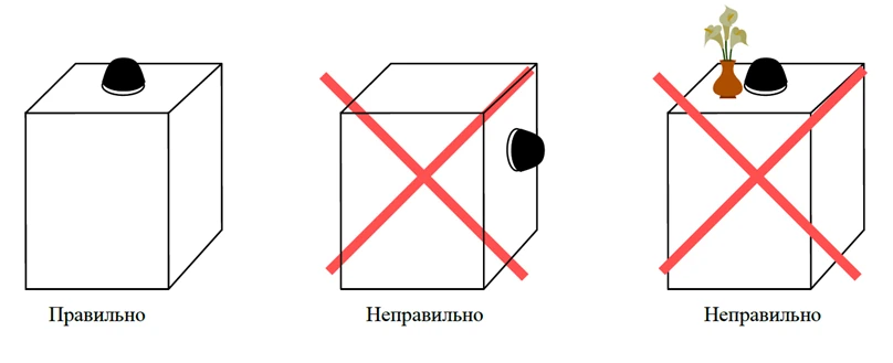 Наличие посторонних предметов допустимо не ближе 80 мм от антенны.