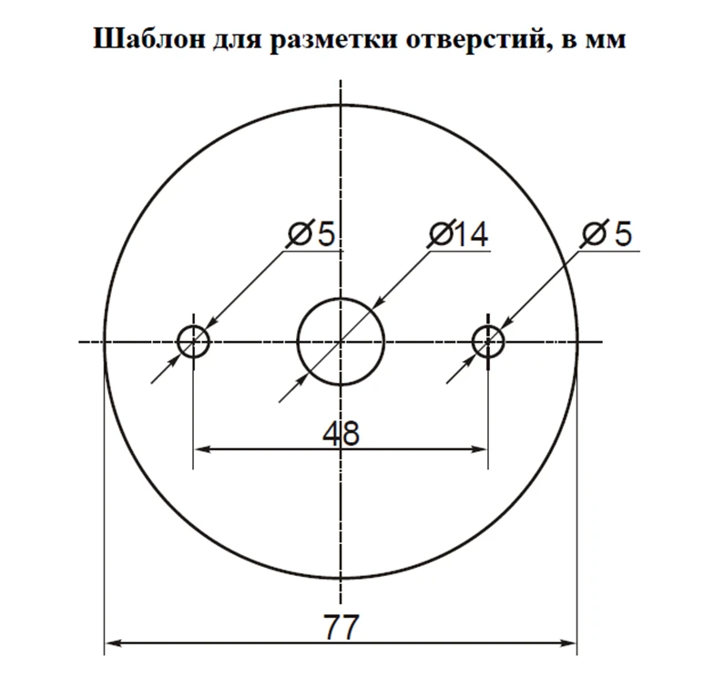 2. С помощью прилагаемого шаблона разметить и просверлить 3 отверстия указанных диаметров (одно под кабель и два крепёжных)