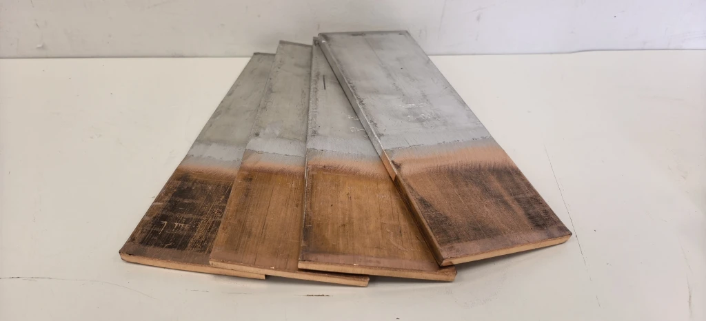 Пластины переходные медно-алюминиевые МА изготавливаются из двух металлов по технологии ударно-стыковой сварки по ГОСТ 19357-81 и предназначены для присоединения алюминиевых шин к медным выводам электротехнических устройств или медным шинам для исключения электрохимической коррозии из-за разницы потенциалов меди и алюминия.