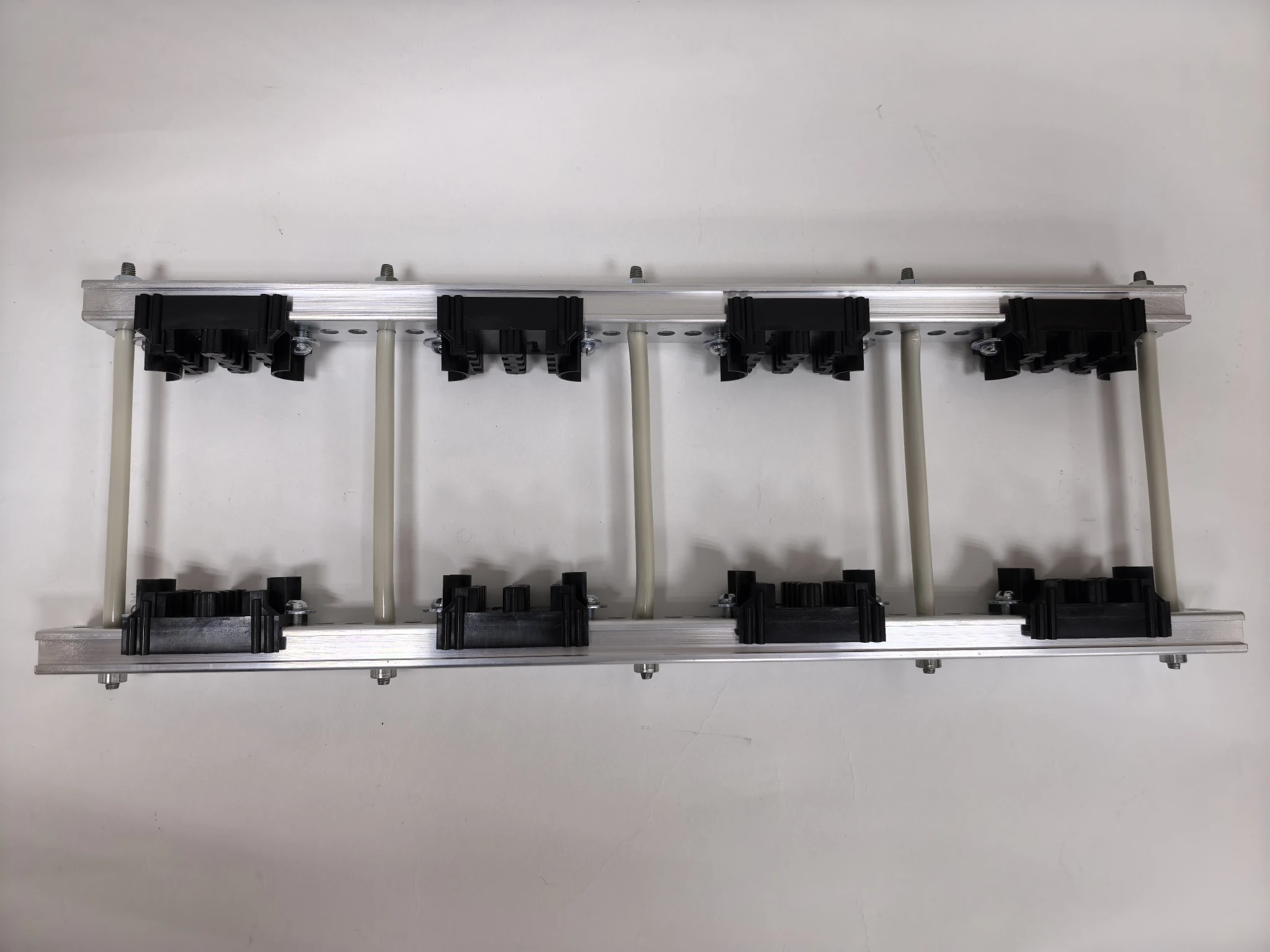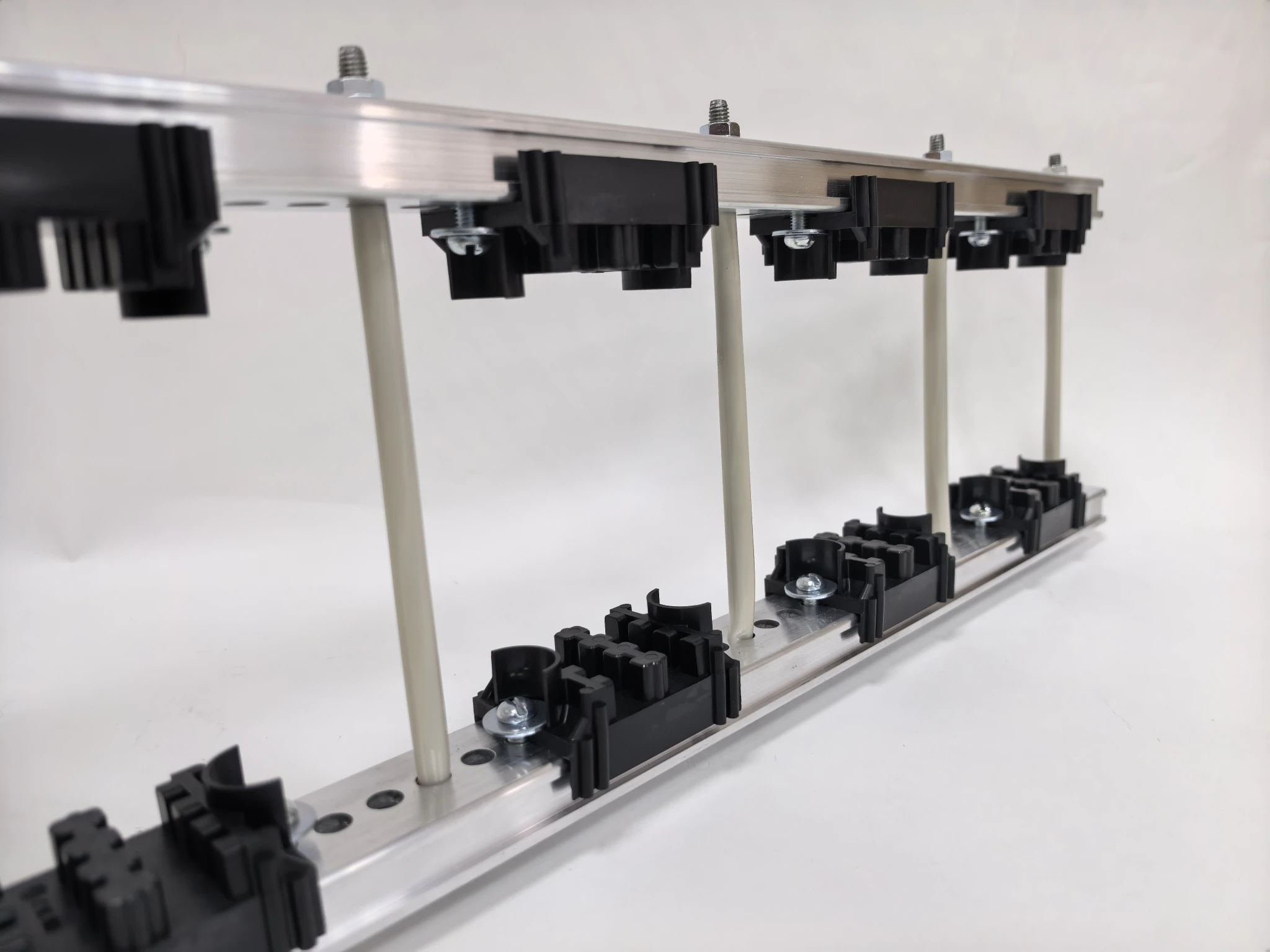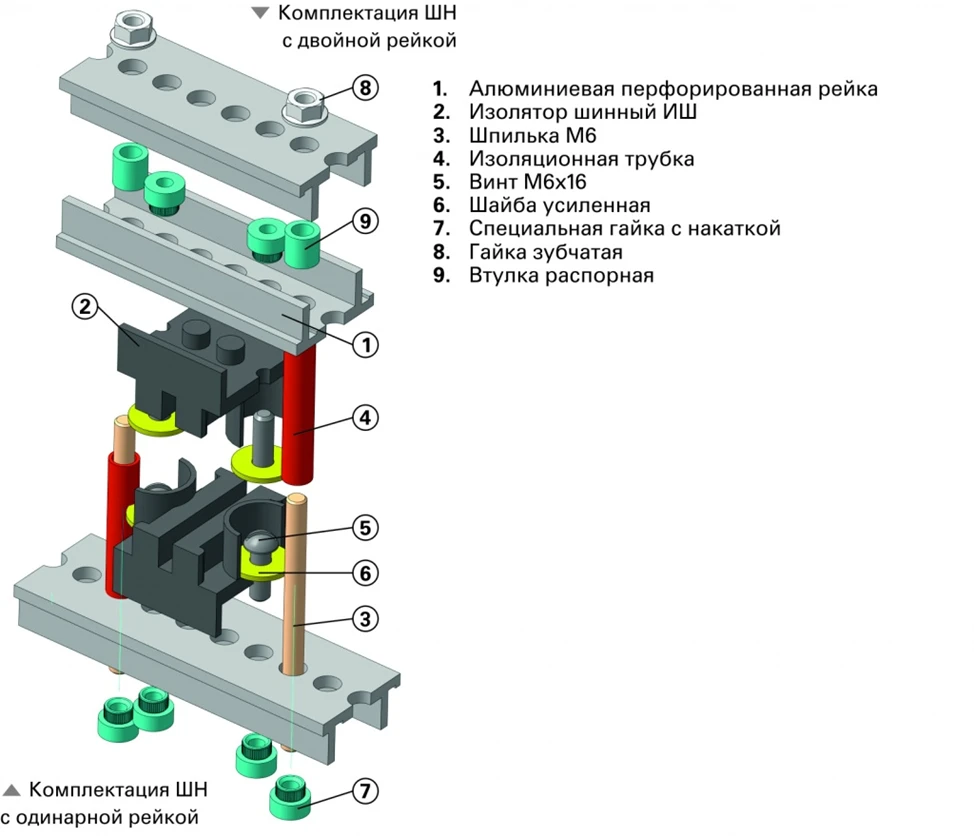 Шинодержатель ШН-10х120-2-2-125-П2-УХЛ3 - шинодержатель наборный с полной комплектацией и с двойными рейками, который предназначен для закрепления плоских токоведущих шин в электроустановках различного назначения и организации шинных трасс на напряжение до 1000 В переменного тока частотой 50, 60 Гц.