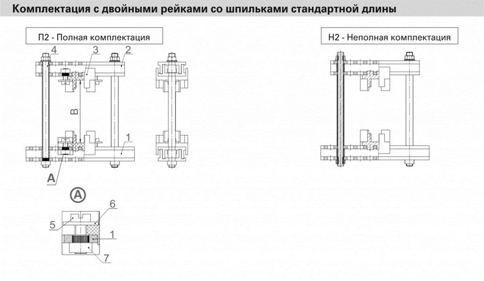 - Исполнение по виду рейки: 1 - одинарная; 2 - двойная (усиленная)