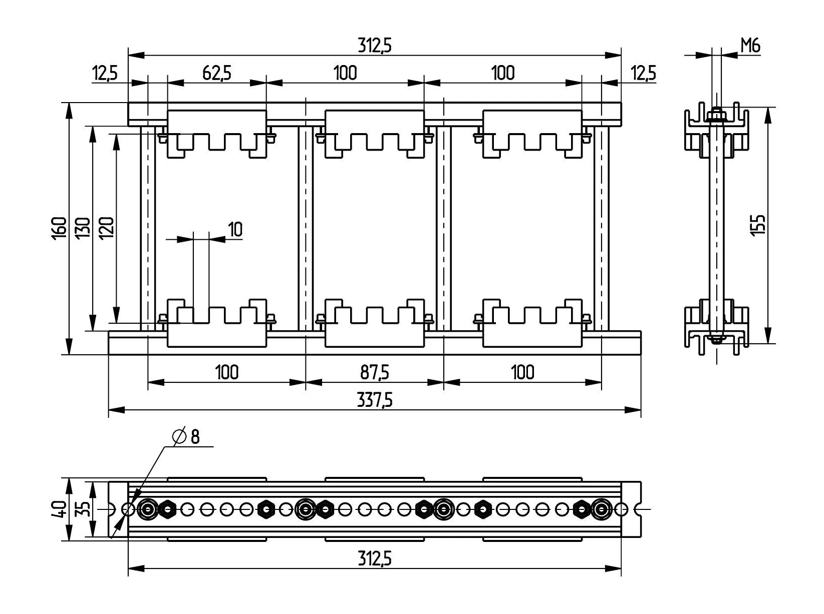 * В случае, если в шинодержателе один полюс, указывается расстояние между крайними шпильками (кратно шагу 12,5 мм).
