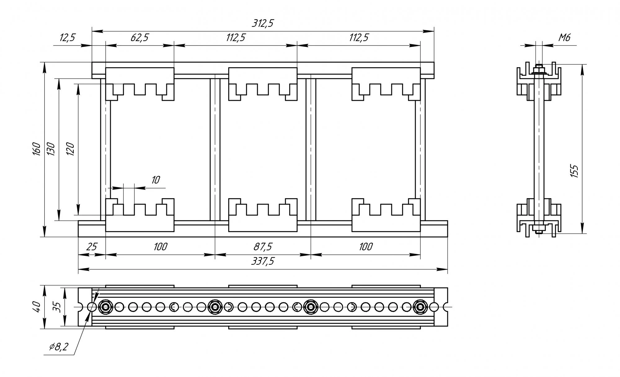 Шинодержатель ШН-10х120-2-3-112,5-Н1-УХЛ3 - шинодержатель наборный с неполной комплектацией и с одинарными рейками, который предназначен для закрепления плоских токоведущих шин в электроустановках различного назначения и организации шинных трасс на напряжение до 1000 В переменного тока частотой 50, 60 Гц.
