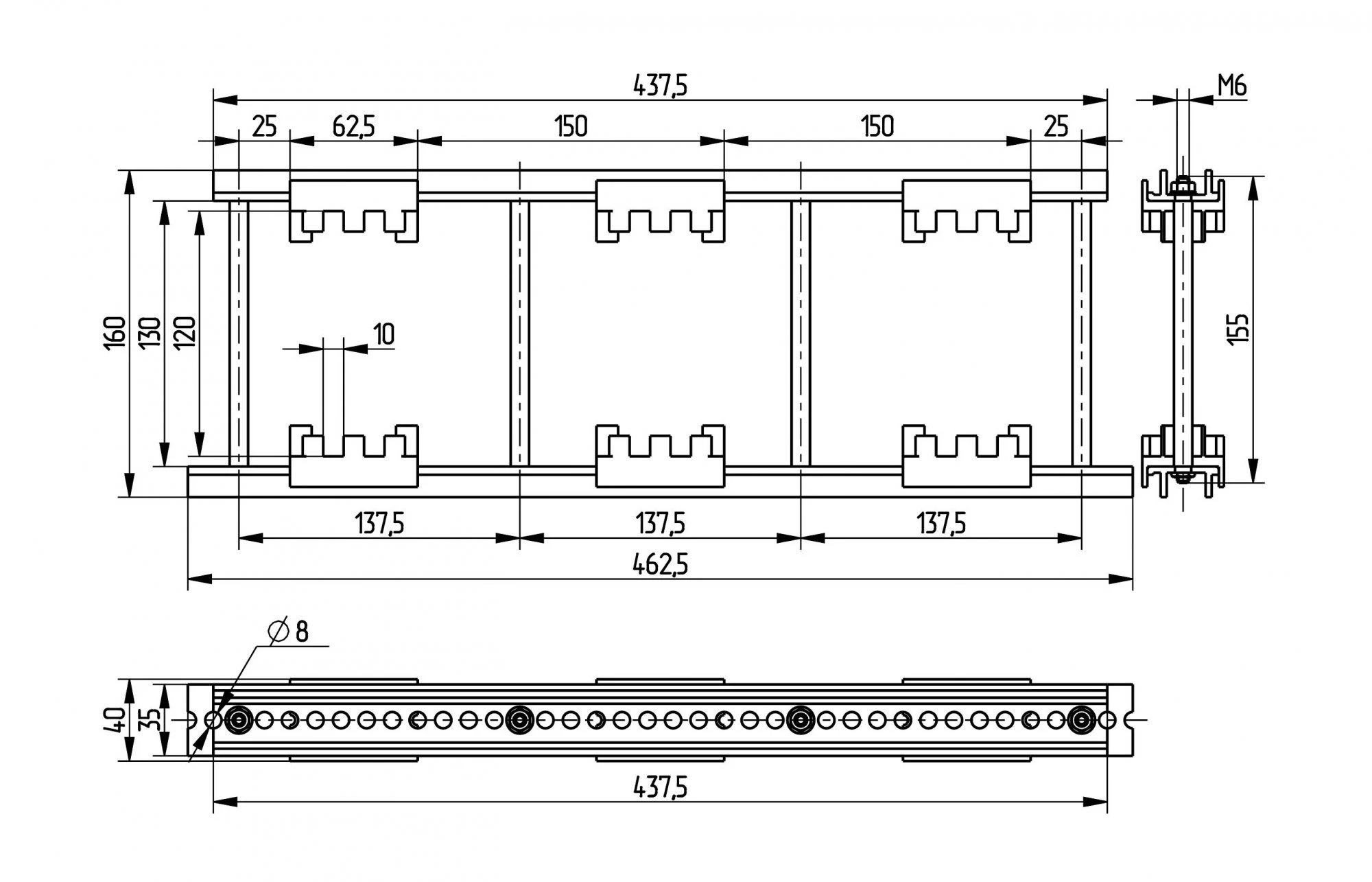 Шинодержатель ШН-10х120-2-3-150-Н1-УХЛ3 - шинодержатель наборный с неполной комплектацией и с одинарными рейками, который предназначен для закрепления плоских токоведущих шин в электроустановках различного назначения и организации шинных трасс на напряжение до 1000 В переменного тока частотой 50, 60 Гц.