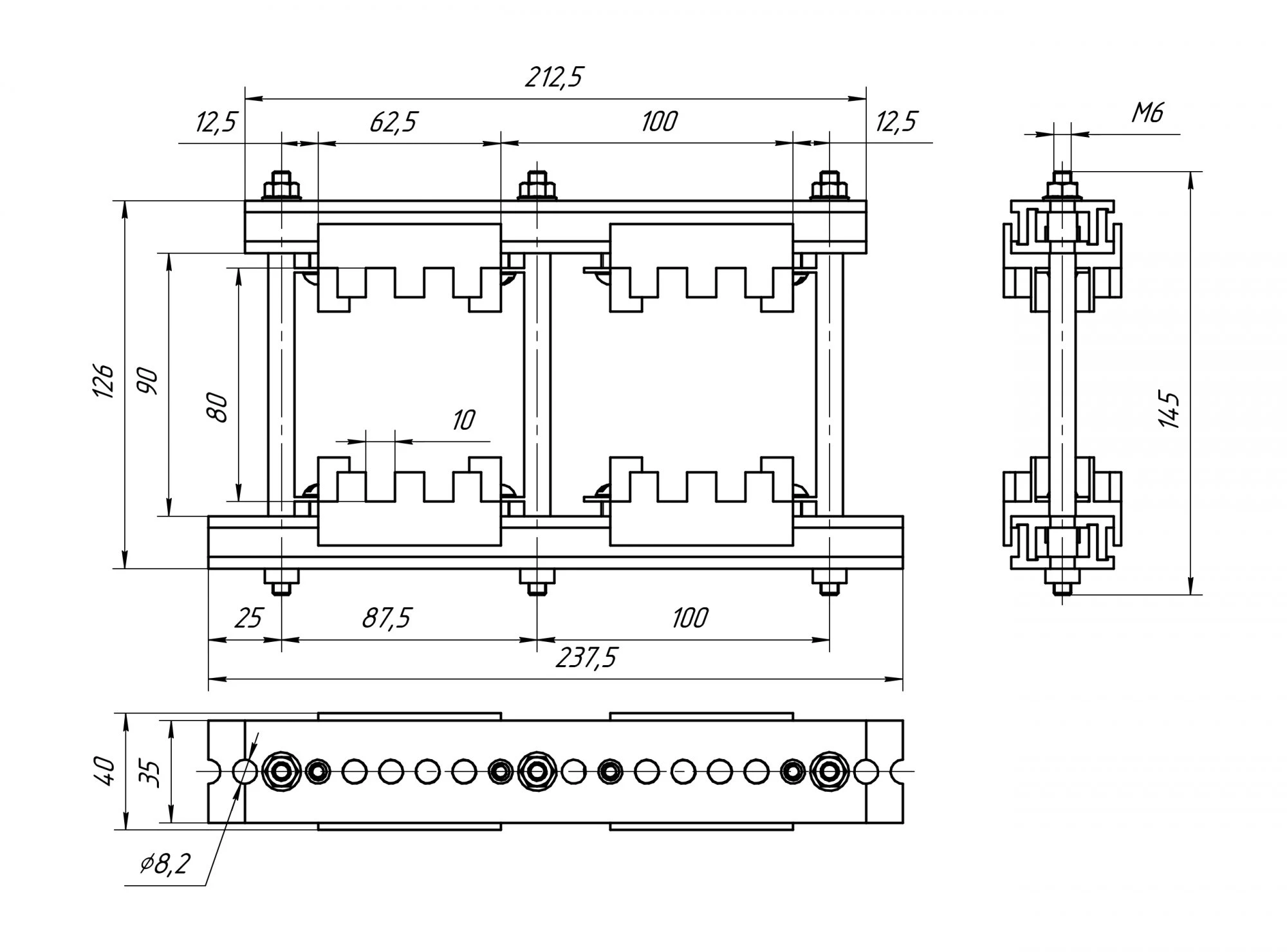 * В случае, если в шинодержателе один полюс, указывается расстояние между крайними шпильками (кратно шагу 12,5 мм).