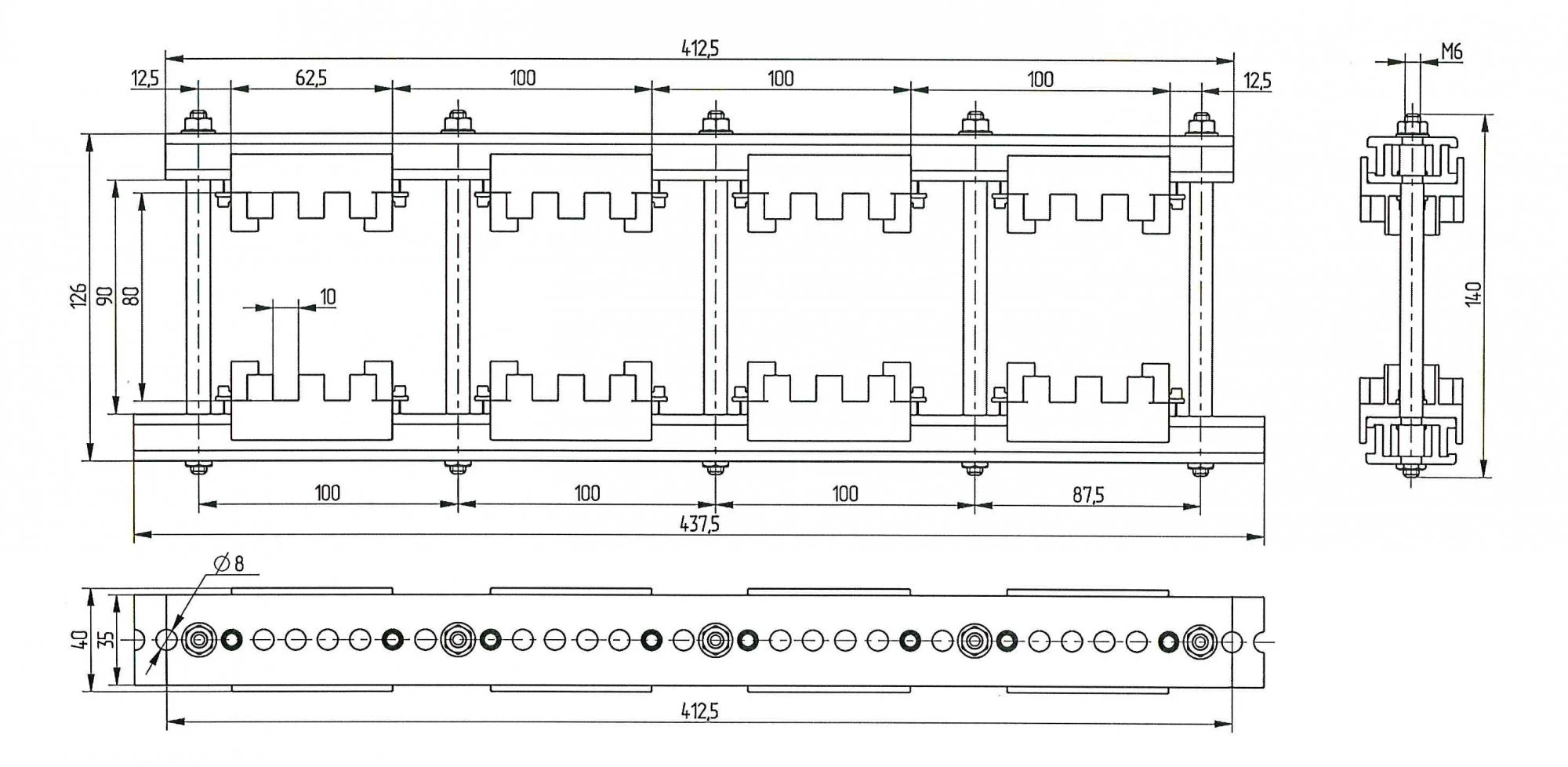 Шинодержатель ШН-10х80-2-4-100-П2-УХЛ3 - шинодержатель наборный с полной комплектацией и с двойными рейками, который предназначен для закрепления плоских токоведущих шин в электроустановках различного назначения и организации шинных трасс на напряжение до 1000 В переменного тока частотой 50, 60 Гц.